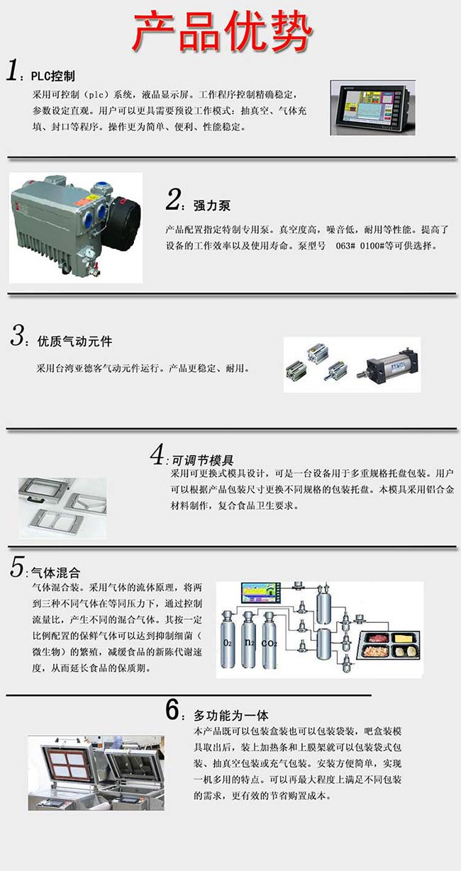 1. 本公司针对连锁店、超市、专卖店、实验室、小型食品生产企业等推出的一款突破性设计真理气调保鲜包装机。